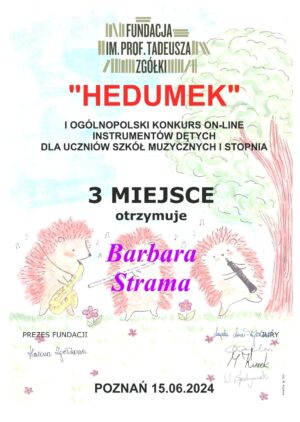 w Ogólnopolskim Konkursie Instrumentów Dętych dla szkół muzycznych I stopnia.