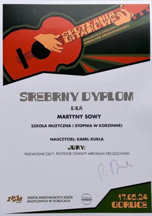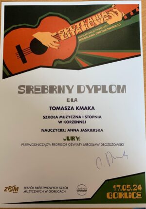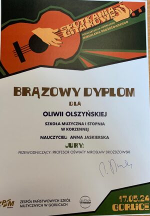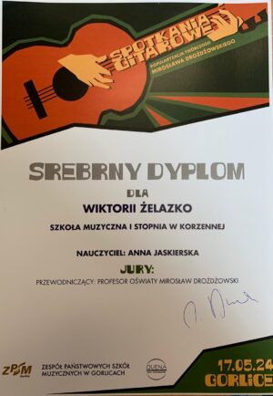 Miło jest nam zakomunikować o kolejnych sukcesach naszych uczniów Szkoła Muzyczna I st. w Korzennej z klasy gitary Pani Anny Jaskierskiej oraz Pana Kamila Kukli. Gratulujemy wspaniałych wyników!!!![]()