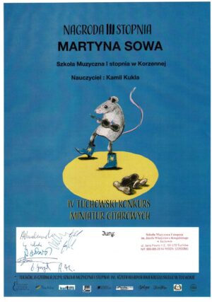 Kolejne osiągnie tym razem uczennica Martyna Sowa z klasy gitary Pana Kamila Kukli zdobyła Nagrodę III Stopnia w IV Tuchowskim Konkursie Miniatur Gitarowych. Gratulujemy![]()