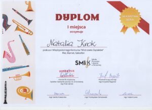 Pana Krzysztofa Bagnickiego, która zajęła I miejsce w I Międzyszkolnym Konkursie ” Mistrzowie Dęciaków”