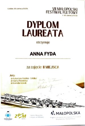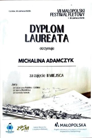 dla naszych wspaniałych flecistek Ani i Michalinie, które na VII Małopolskim Festiwalu Fletowym zdobyły II miejsce, każda w swojej kategorii wiekowej. Gratulujemy Pani Marzena Zaremba-Jasiurkowska za konkursowe przygotowanie uczniów ![]()